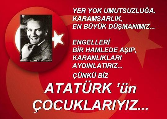 "Gençler, Cesaretimizi güçlendiren ve sürdüren sizlersiniz. Siz, almakta olduğunuz terbiye ve kültür ile, insanlık değerinin, vatan sevgisinin en değerli örneği olacaksınız. Ey yükselen yeni nesil, gelecek sizindir. Cumhuriyeti biz kurduk; onu yükseltecek ve sürdürecek sizsiniz... benim naçiz vücudum elbet bir gün toprak olacaktır, ancak Türkiye Cumhuriyeti ilelebet payidar kalacaktır."