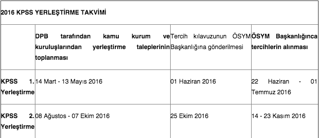2016 KPSS yerleştirme takvimi açıklandı