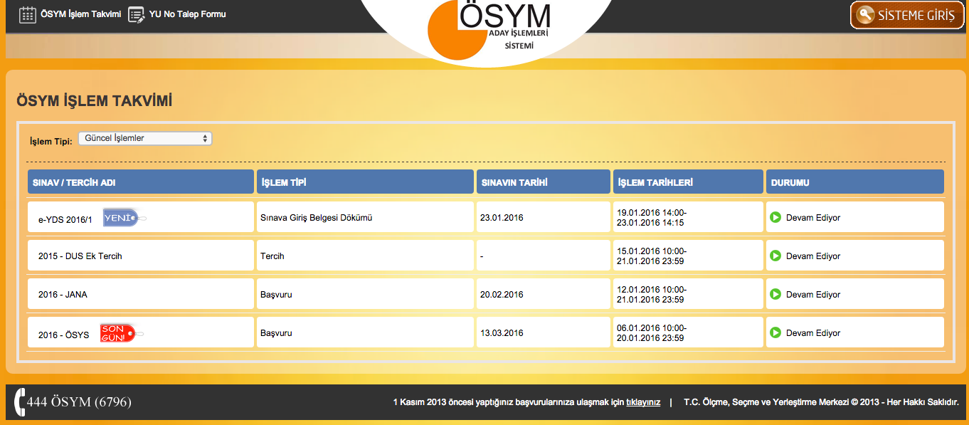 2016 YGS SINAV TARİHİ : 13 Mart 2016