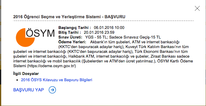 2016 YGS başvurusu için bugün son YGS ücreti ne kadar