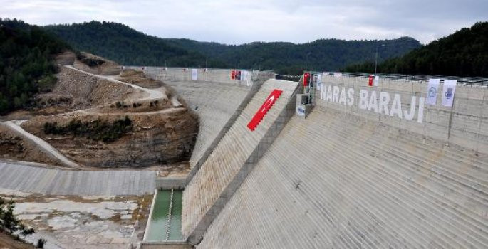 Diniz, Naras Barajı'nın Antalya'nın Manavgat İlçesinin 16 kilometre kuzey batısında silindirle sıkıştırılmış beton dolgu tipinde inşa edildiğini kaydetti.