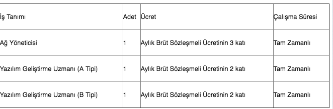 1- Ağ Yöneticisi: (1 Kişi - Tam Zamanlı - Aylık Brüt Sözleşme ficret tavanının 4 katı kadar ücret tahsisli kadro için 3 katı ficret ödenecektir.)