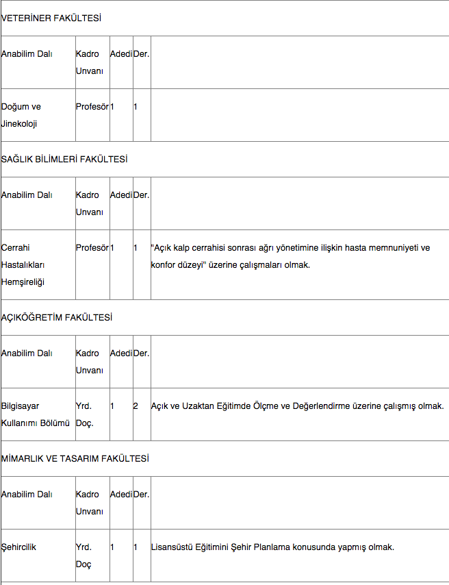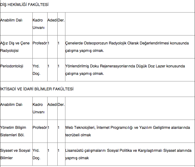 Üniversitemize bağlı birimlerde istihdam edilmek üzere, 2547 Sayılı Kanunun ve Üniversitemiz Öğretim Üyeliğine Yükseltilme ve Atanma Yönetmeliğinin ilgili maddelerine göre öğretim üyesi alınacaktır.