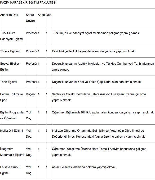 - Adaylar Personel Daire Başkanlığına müracaat ederken; dilekçe, özgeçmiş, yayın listesi, doçentlik belgesi, doçentlik yabancı dil belgesi, lisans, yüksek lisans, doktora veya uzmanlık belgeleri, nüfus cüzdan fotokopisi ve iki adet fotoğrafla birlikte 6 takım dosyayı teslim edeceklerdir. Ayrıca, "Öğretim Üyeliğine Yükseltilme ve Atanma Yönetmeliği"nin 17. maddesi gereğince yayın listelerinde başlıca araştırma eserlerini belirteceklerdir.