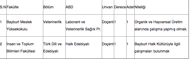 Bayburt Üniversitesi kendi bünyesinde istihdam etmek üzere öğretim üyesi alacak.