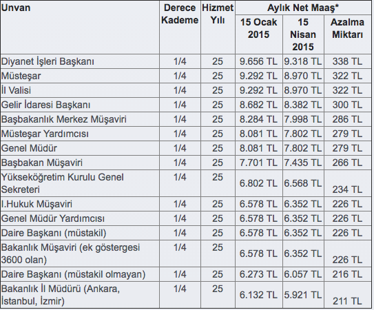 Bazı memurların 15 Ocak 2016 ve 15 Nisan 2016 net maaşları: