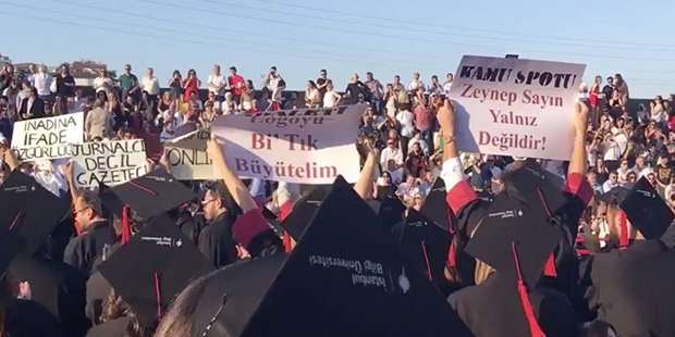 Bilgi Üniversitesi, İletişim Fakültesi’nde ders veren Prof. Zeynep Sayın'ın ders esnasında sarf ettiği "En iyisini o yapıyor, en güzel nobranlığı, en güzel kabalığı, en güzel 'ben yaptım oldu'yu işin aslına bakarsanız o yapıyor" sözlerini Cumhurbaşkanı Tayyip Erdoğan'a hakaret sayarak Sayın'ı görevden almıştı.