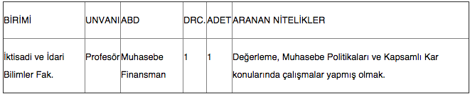Üniversitemizin aşağıda belirtilen birimine, 2547 sayılı Yükseköğretim Kanunu, Öğretim Üyeliğine Yükseltilme ve Atanma Yönetmeliği, Üniversitemiz web sayfasında yayınlanan Akademik Yükseltilme ve Atanma Ölçütlerinin ilgili maddeleri ve 657 sayılı Devlet Memurları Kanununun 48. maddesinde belirtilen şartları sağlayanlardan Öğretim Üyesi alınacaktır.