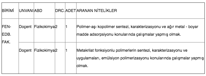 Üniversitemizin aşağıda belirtilen birimine, 2547 sayılı Yükseköğretim Kanunu, Öğretim Üyeliğine Yükseltilme ve Atanma Yönetmeliği, Üniversitemiz web sayfasında yayınlanan Akademik Yükseltilme ve Atanma Ölçütlerinin ilgili maddeleri ve 657 sayılı Devlet Memurları Kanununun 48. maddesinde belirtilen şartları sağlayanlardan Öğretim Üyesi alınacaktır.