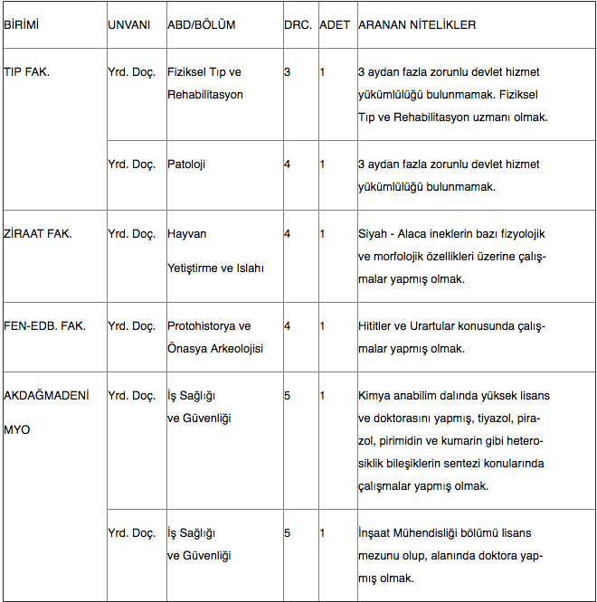 Başvuru Adresi : Yrd. Doç. Kadrosu için ilgili birimlere başvuru yapılacaktır.