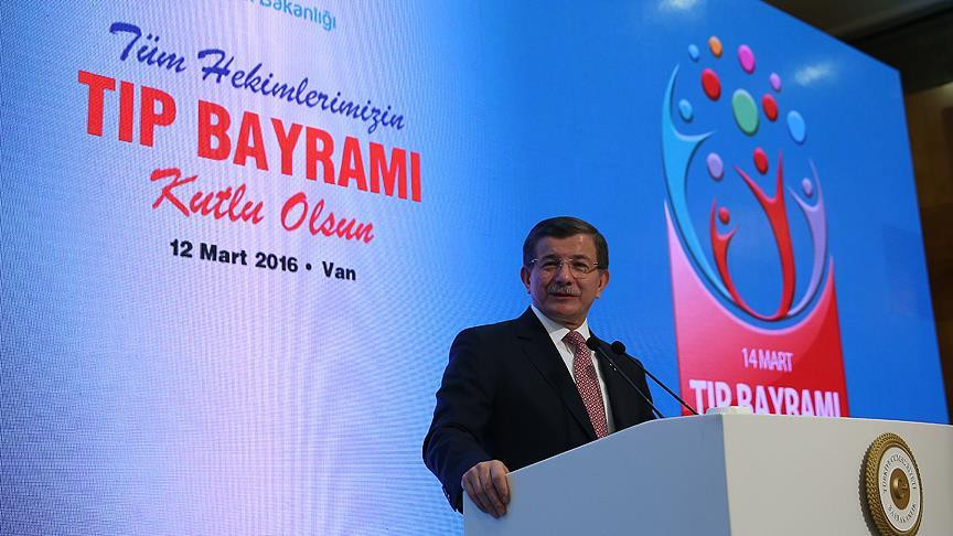 Başbakan Davutoğlu, Van'da Tıp Bayramı etkinliğinde konuştu. Başbakan Davutoğlu, "Sağlık çalışanlarına yönelik şiddete ciddi önlemler alıyoruz. Hazırladığımız genelge ve eylem planıyla sağlık çalışanlarına şiddet uygulayan hasta ve hasta yakınları, kolluk güçlerinin yetkisinde olan gözaltı uygulamasına maruz kalacaklar" dedi.