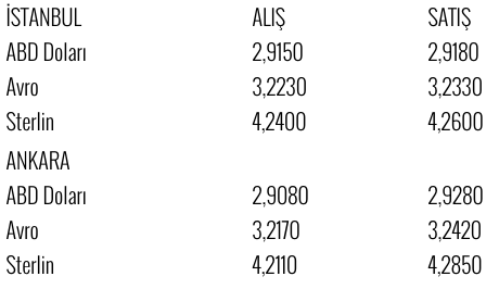 İstanbul ve Ankara'da dolar, avro ve sterlinin alış-satış fiyatları, saat 9.30 itibarıyla şöyle: