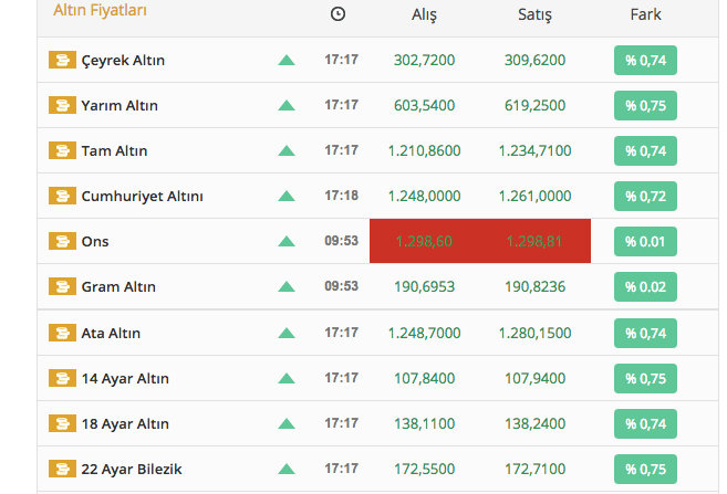 ALTIN FİYATLARI NE DURUMDA?: Hafta içinde 190 liranın altına inen gram altında artış var. Kapalıçarşıda altının gramı 190,700 TL'den alıcı bulurken çeyrek altın 309 lira. Cumhuriyet altını 1261 liradan alıcı buluyor.