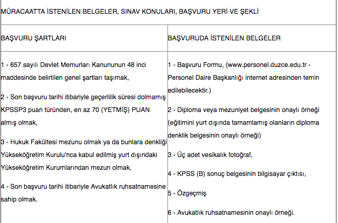 Düzce Üniversitesi avukat alım ilanı yayınladı. Başvuru şartlarında KPSS'den en az 70 puan alması gerektiği belirtildi. Peki diğer şartlar neler, kendi içinde sınav yapacak mı? Detaylar memurhaber.com'da.