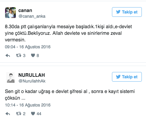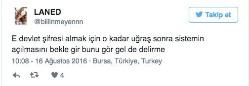 Eğitim ajansı adlı sitede yer alan habere göre, sitede bakım nedeniyle elektronik kayıtlar kapalı. "Türkiye.gov.tr" adresinden üniversitelere e-kayıt yaptırmak isteyen adaylar "Kuruma ait sistemlerde yapılan planlı bakım çalışması dolayısıyla bu hizmet geçici olarak kullanıma kapatılmıştır" uyarısıyla karşılaştı. Adaylardan bazıları da seslerini Twitter' dan duyurmaya çalışıyor.