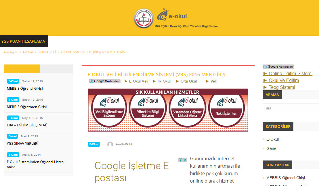 Milli Eğitim Bakanlığı son yıllarda eğitimde daha çağdaş ve daha modern standartların yakalanabilmesi amacı ile internet teknolojilerini çok daha aktif bir şekilde kullanmaya başladı.Milli Eğitim Bakanlığı’nın e-Okul sistemi ile birlikte öğrencilerin not bilgisi, devamsızlık bilgisi, karne bilgisi, sınav tarihleri, sözlü notları ve şube ortalaması gibi daha pek çok eğitim bilgisinin en güncel durumu internet kolaylığında incelenebiliyor.