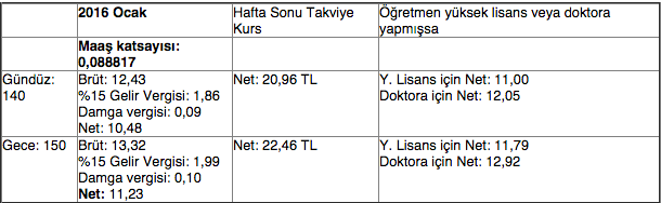 - Hafta sonu takviye kurslarında bu ücretler iki katı olarak ödenmektedir.