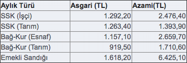 MHP Ankara Milletvekili Mustafa MİT tarafından verilen bir soru önergesine cevap niteliğinde hazırlanan ve Çalışma ve Sosyal Güvenlik Bakanı Süleyman SOYLU imzasını taşıyan açıklamada; Emekli Sandığı, SSK ve Bağ-Kur emeklilerinin almakta oldukları aylıkların en düşük ve en yüksek miktarlarına tablo halinde yer verildi: