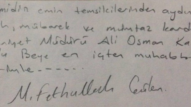 Eski Bursa İl Emniyet Müdürü Ali Osman Kahya'nın evinden Fethullah Gülen'in yazdığı bir not çıktı.