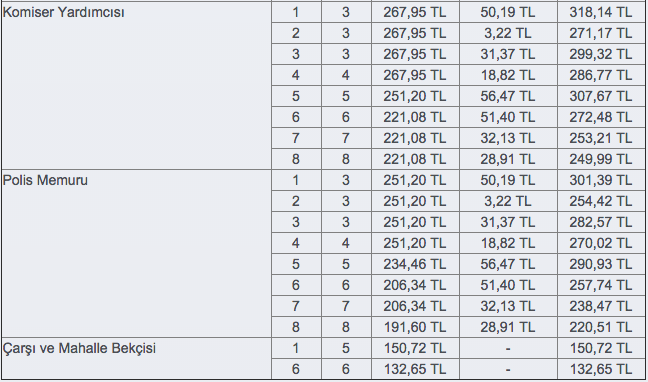 Kanun Tasarısı hükümlerinin 2016 yılı ilk altı ayı içerisinde emniyet personeli hakkında uygulanması durumunda, ilgili personelin aylık ücretlerinde ne kadar artış olacağı (15 Ocak 2016 tarihinde alacakları maaşa göre artış) konusunda bilgi vermesi bakımından memurunyeri.com olarak yaptığımız hesaplamada aşağıdaki sonuçlara ulaşılmıştır.