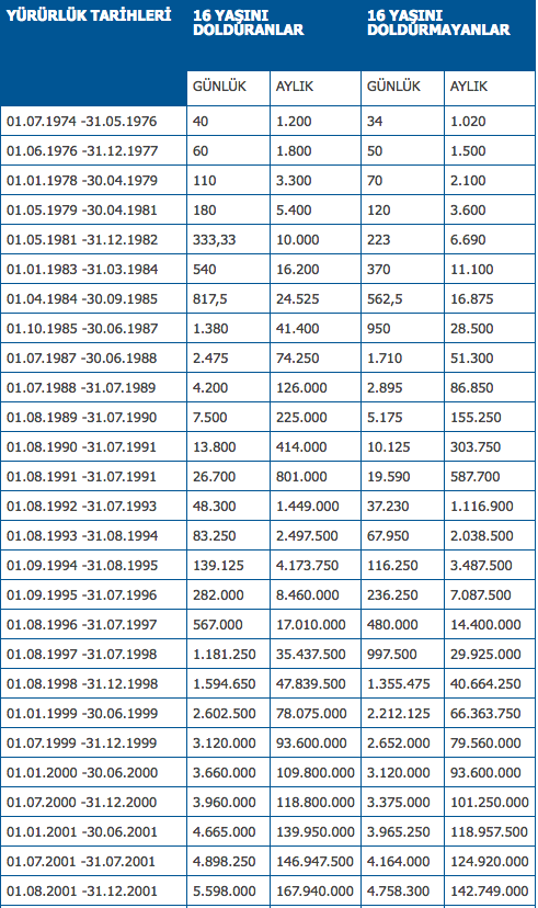 Günlük ve aylık asgari ücretler 2016 tam liste