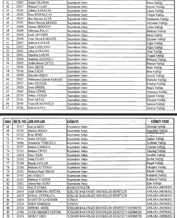 İÇİŞLERİ BAKANLIĞI İHRAÇ EDİLEN MEMURLARIN LİSTESİ