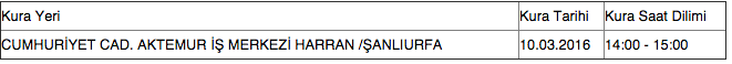 Talep şartlarına durumu uyan adaylar, ilanın yayınlandığı tarihten itibaren 10 gün içerisinde talebin İl/Şube Müdürlüklerimizden veya www.iskur.gov.tr internet adresi üzerinden başvuru yapabilirler. - Gerçeğe aykırı belge verenlerin ya da beyanda bulunanların başvurusu geçersiz hale getirilmesi, işe alınması işleminin iptaline ilişkin Kurumun ve talep sahibi kamu kurum ve kuruluşunun yasal işlem yapma hakkı saklıdır. - Taleplere başvuru yapan ve nihai listede yer alan adaylar, eğitim durumu, tecrübe, öncelik durumu vb. koşulları taşıyıp taşımadıklarını yazılı veya sözlü sınavdan önce talebi veren kamu kurum ve kuruluşuna ibraz etmek zorundadır. Bu durumlarını belgeleyemeyenler veya yanlış beyanda bulunanlar nihai listeden çıkarılarak sıralamada yer alan diğer kişiler listelere dahil edilecektir. - Müracaat tarihleri çakışan, aynı kamu kurum ve kuruluşunun birden fazla işgücü talebine durumu uyan iş arayanın, tercihi doğrultusunda sadece bir talebe müracaatı kabul edilecektir. - İşyerine ismi bildirilen kişilere yazılı veya sözlü sınavın yeri ve zamanı talebi veren kamu kurum ve kuruluşu tarafından adaylara yazılı olarak bildirilecektir. - Kuraya tabi olan işgücü taleplerine şartları uyan ve müracaatları kabul edilenlerin tamamı noter huzurunda kura çekimi için nihai liste işverene gönderilir. - Kuraya tabi taleplere başvuran önceliklilerin tamamı kura çekilmek üzere, isim ve adresleri ile durumlarına ilişkin açıklayıcı bilgilerle birlikte, ayrı bir liste halinde kamu kurum ve kuruluşuna bildirilir. - Öncelik hakkına sahip olanlardan, başvuruda bulundukları sürekli veya geçici işgücü talebine işverence davet edildikleri halde mücbir sebepler dışında icabet etmeyen, sınava katılmayan, işi reddeden veya kamuda sürekli işçi statüsünde işe yerleşenlerin öncelik hakkı ortadan kalkar. Öncelik hakkından ikinci kez yararlanılamaz. - Kamu kurum ve kuruluşlarının sürekli (daimi), geçici işgücü taleplerine yapılan başvurularda kişilerin Adrese Dayalı Nüfus Kayıt Sisteminde kayıtlı olan adresleri dikkate alınır. KURA ÇEKİMİ 10.03.2016 TARİHİNDE SAAT 14:00 'İMAMBAKIR SULAMA BİRLİĞİ BAŞKANLIĞI CUMHURİYET MAH. AKTEMUR İŞ MERKEZİ HARRAN / ŞANLIURFA ADRESİNDE YAPILACAKTIR.