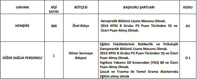 ADAYLARDAN İSTENEN ŞARTLAR: Başvuracak adaylarda yukarıda belirtilen özel şartlar ile 657 sayılı Kanunun 48. maddesinde belirtilen genel şartları taşıyor olmak. Herhangi bir Sosyal Güvenlik Kurumundan emeklilik veya yaşlılık aylığı almıyor olmak. Tüm pozisyonlar için haftalık çalışma süresi 40 saati aşmayacak şekilde ilgili birimin yönetimi tarafından belirlenecek saatlerde görev yapma (gece dâhil) şartını kabul etmek.