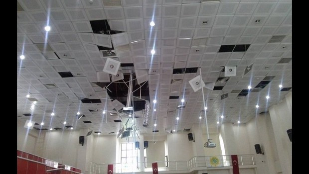 Patlamanın şiddetiyle okul binası bu hale geldi.
