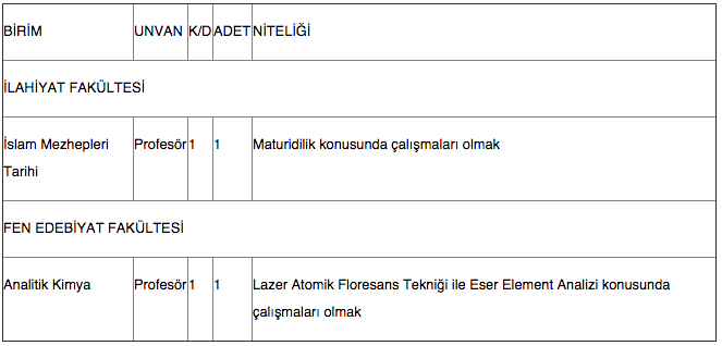 Üniversitemizin aşağıda belirtilen birimlerine; 657 sayılı Devlet Memurları Kanununun değişik 48. maddesinde ve 2547 sayılı Yükseköğretim Kanunu ile Öğretim Üyeliğine Yükseltilme ve Atama Yönetmeliği hükümlerine göre çalıştırılmak üzere öğretim üyesi alınacaktır. Başvuru süresi ilanın yayımı tarihinden itibaren 15 gündür.