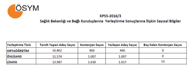 KPSS 2016/3 tercihlerinde 13 kadro boş kaldı. 12 Nisan'da başlayıp 18 Nisan'a kadar devam eden tercihler bugün yani 22 Nisan'da açıklandı.