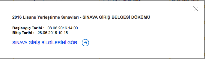 'Sınava giriş bilgilerini gör' seçeneğine tıkladığınızda