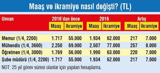 Memur emekli maaşları ve ikramiyeleri 2016'da ne kadar arttı?