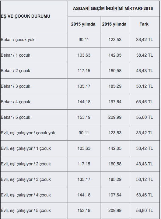 ASGARİ GEÇİM İNDİRİMİ MİKTARI-2016