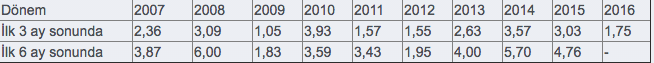 Tablodaki bilgilere bakıldığında, son 10 yılda;