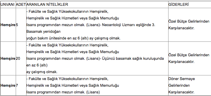 MERSİN Üniversitesi yayınladığı ilan neticesinde 32 hemşire alımı, sözleşmeli personel alımı yapacağını duyurdu. Mersin Üniversitesi iş ilanına dair başvuru şartları, başvuru formu ve başvuru tarihleri ile diğer detaylı bilgiler haberimizde.