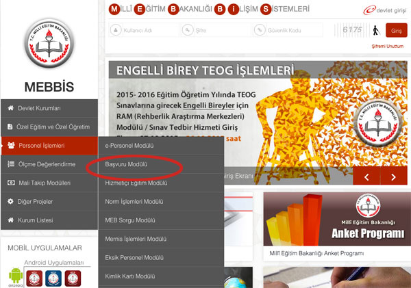 Adaylar durumlarına uygun atama türünü seçmek suretiyle http://mebbis.meb.gov.tr ve http://ikgm.meb.gov.tr adreslerindeki Elektronik Başvuru Formu'nu doldurarak başvuru yapacak.