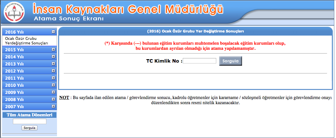 Öğretmen atama sonuçları 2016 MEBBİS sorgulama ekranı