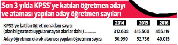 Devlet okullarında öğretmenlik yapabilmek için sınava girenlerin çoğu eğitim fakültesi veya fen edebiyat fakültesinde okuyup formasyon alanlardan oluşuyor.