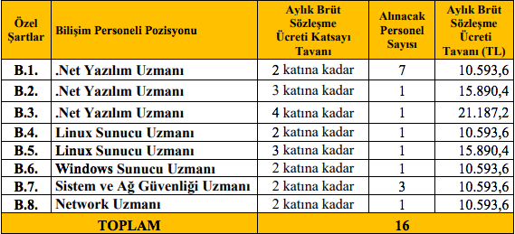 KPSS VE YDS ŞARTI: Başvuracak adaylar arasındaki sıralama 2016 veya 2017 yıllarında yapılan Kamu Personeli Seçme Sınavında (KPSS) alınan KPSSP3 puanının yüzde yetmişi (%70) ile 2013 yılından itibaren (2013 yılı dahil) yapılan İngilizce dilinde Yabancı Dil Bilgisi Seviye Tespit Sınavı (YDS) veya buna denkliği Yükseköğretim Kurulunca kabul edilen YDS dengi puanın yüzde otuzunun (%30) toplamı esas alınarak yapılacağı belirtilen duyuruda sıralamaya göre en yüksek puanlıdan başlanarak sözleşmeli bilişim personeli pozisyonunun 5 (beş) katı aday, Genel Müdürlük tarafından 07/05/2018 – 18/05/2018 tarihleri arasında gerçekleştirilecek sözlü ve uygulamalı mülakata çağrılacak.