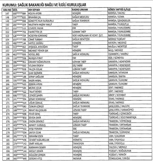 Sağlık Bakanlığı görevden ihraç edilenler 23 Ocak 2017 tam liste
