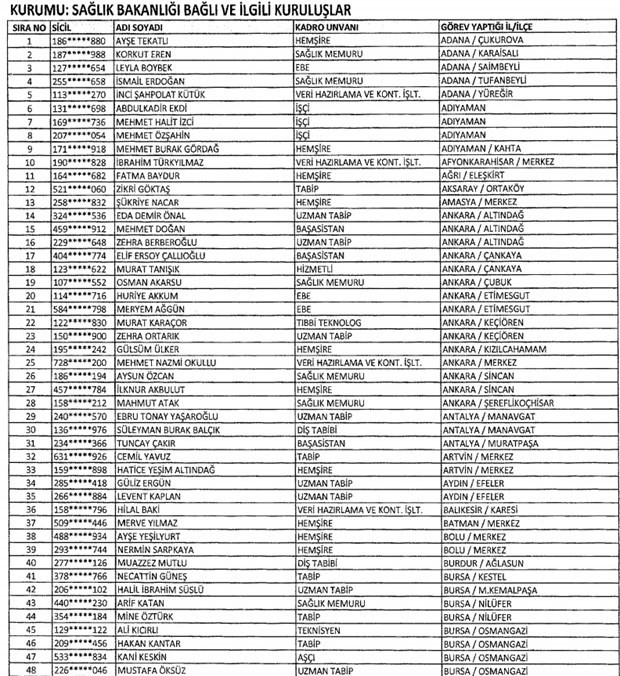 SAĞLIK BAKANLIĞI İHRAÇ EDİLENLERİN TAM LİSTESİ