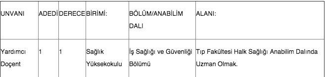 NOT: -(Yardımcı Doçent kadrosuna; Profesör ve Doçentler müracaat edemezler.)