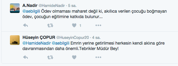 Milli Eğitim Bakanı Nabi Avcı tatilde ödev verilmemesi ile ilgili açıklamalar yapmış, geçtiğimiz haftalarda tatilde ödev konusu gündeme oturmuştu. Konu ile ilgili, yani sömestr tatilinde öğrenciye ödev verilmemesi konusunda bakanlık da genelge yayınlamıştı. mebpersonel'in haberine göre, Milli Eğitim Bakanlığı müsteşar yardımcısı Ahmet Emre Bilgili, resmi twitter adresi üzerinden yaptığı açıklamada bakan Avcı'nın ödev yapan çocukları gördüğünü ve soruşturma için Ankara İl Milli Eğitim Müdürüne talimat verdiğini paylaştı.