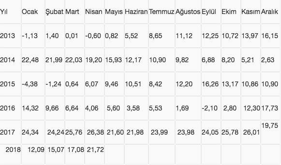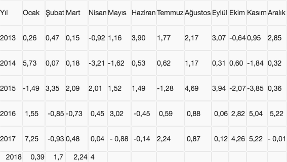 YD-ÜFE'nin aylık değişim oranları şöyle: