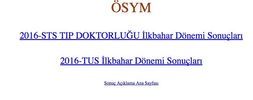 2016-Tıpta Uzmanlık Eğitimi Giriş Sınavı ilkbahar dönemi (TUS) ve 2016-Tıp Doktorluğu Seviye Tespit Sınavı (STS) ilkbahar dönemi yerleştirme sonuçları açıklandı.