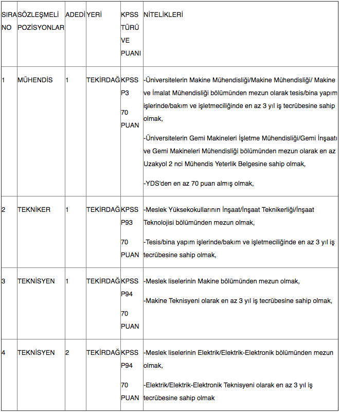 KPSS PUAN SIRALAMASI İLE YERLEŞTİRİLECEK SÖZLEŞMELİ POZİSYONLAR: