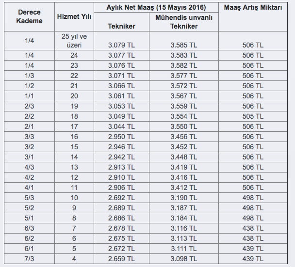İki yıl süreli yüksek teknik öğrenim mezunu olarak tekniker unvanlı bir kadroda görev yapan Devlet memurları, mühendislik fakültelerinden mezun olduklarında, kadroları değişmese bile maaşları artar.