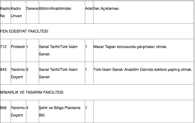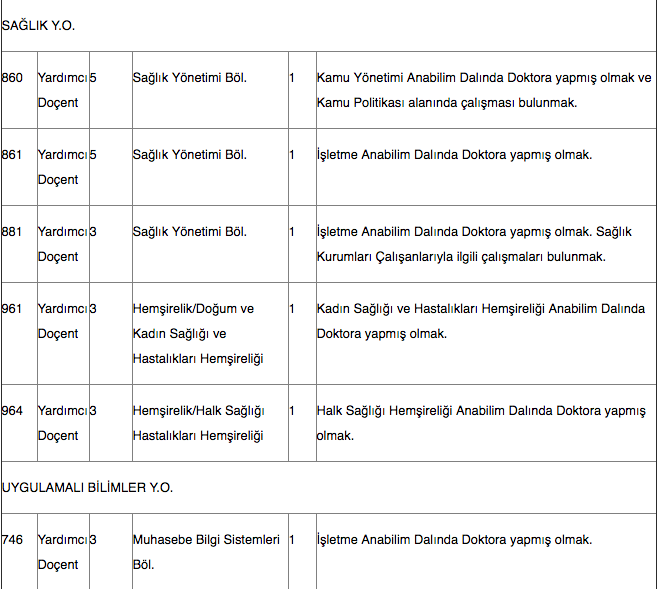 2) Yardımcı Doçent kadrolarına müracaat edecek adaylar; Yabancı dil belgesi, Doktora diploması, bilimsel çalışma-yayınlarını, özgeçmiş ve (4 takım) yayın dosyaları ile ilgili birimlere şahsen başvurmaları gerekmektedir.